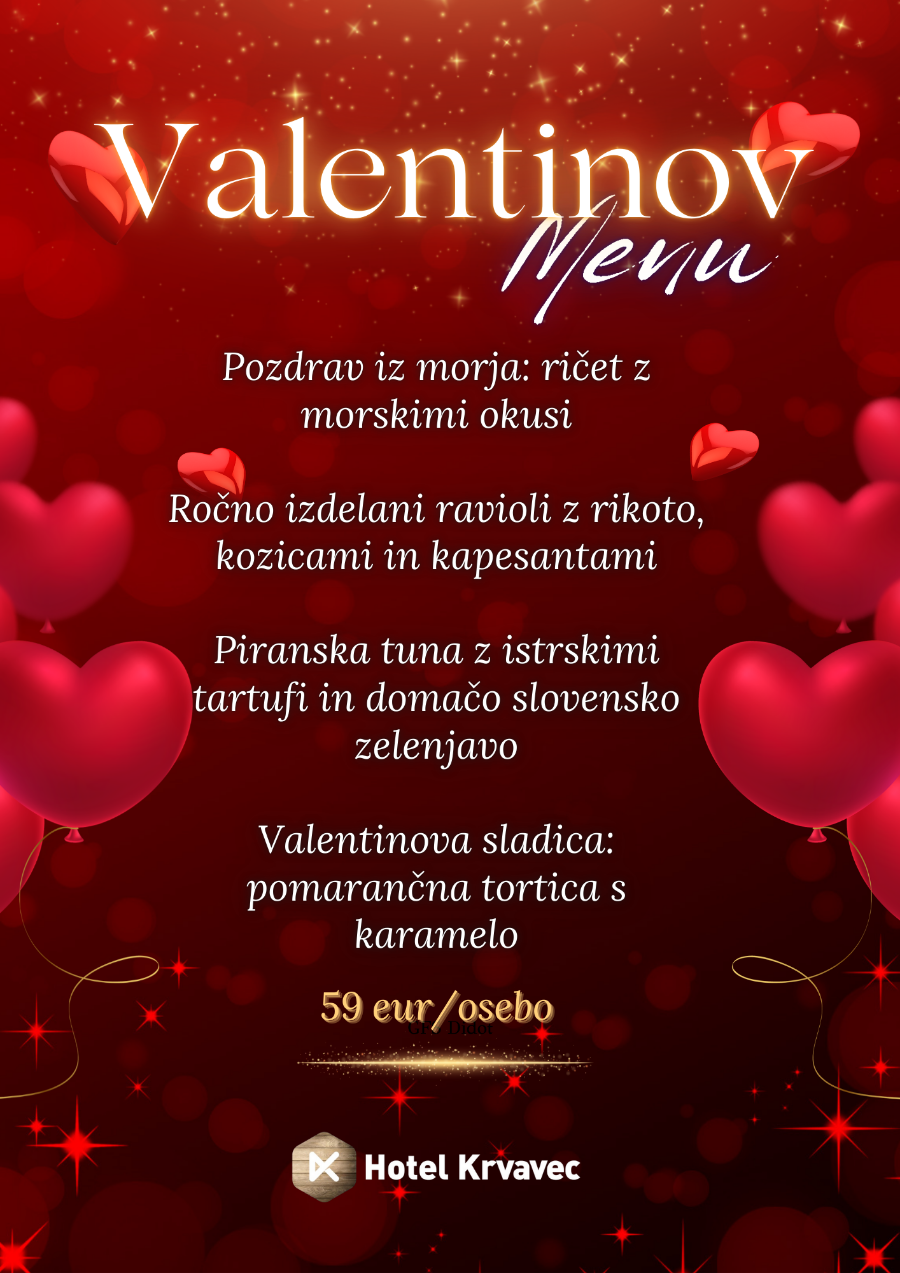 Naj bo vajin večer nekaj posebnega, v Hotelu Krvavec. Razvajali vaju bomo z 4-hodnim menijem izpod rok kulinaričnega mojstra Paula Šverka in dalmatinskimi melodijami Klape Levanda.